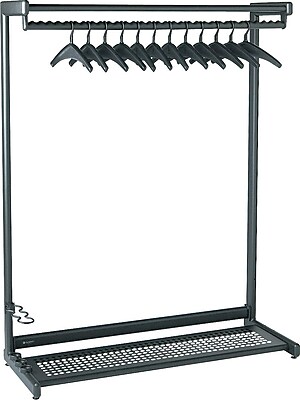 Quartet® Two-Shelf Garment Rack, Freestanding, 48", Black, 12 Hangers Included 20224 Product Description A convenient top and bottom shelf provide ample storage space in addition to the hangers that are included with this contemporary garment rack. ... Read Content